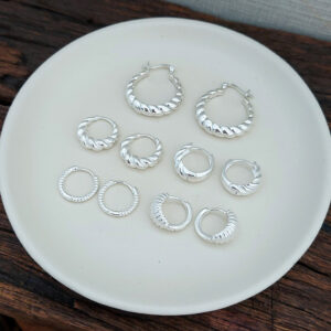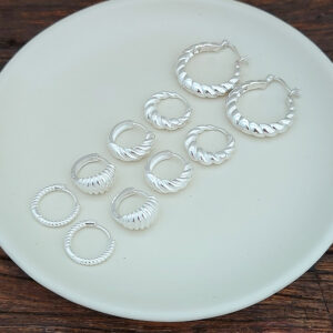 Make a bold statement with our Classic Croissant silver hoop earrings! These unique hoops feature a trendy croissant design that is sure to turn heads. Crafted from stunning sterling silver, these earrings will add the perfect touch of shine to any outfit.