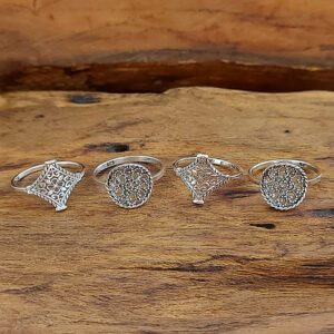 This is an almost diamond shaped sterling silver ring with intricate filigree inspired metal work that forms a pattern on the face. It has been slightly oxidised which means the non exposed surfaces are darkened to give it that Bohomenian or aged look and the face is gently curved to follow the shape of the finger for a snug comfortable fit.