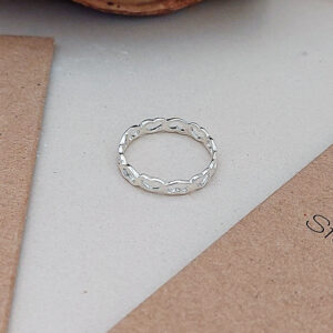 Fall in love with our Heart Band silver ring! Made of 925 sterling silver, this band ring features a beautiful design of hearts all around. Perfect for adding a touch of romance to your everyday look.