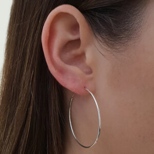 These medium slim sterling silver hoop earrings have a classic shape and continuous hoop clasp with the housing or tubing made from a hollow construction so they are very light and comfortable. The sizes vary from 20mm up to 40mm and are perfect for all occasions. Price is for 1 Pair of Earrings. There are also small and large hoops in this same slim width.