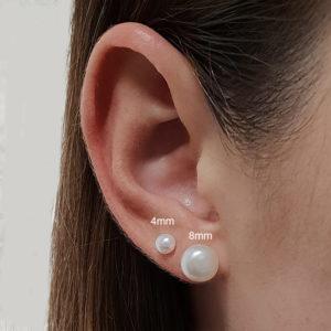 These are medium sized 8mm natural freshwater pearl earring studs set in solid 925 sterling silver in a truly classic design that has been around for centuries. They are ball like in structure and being natural they are all unique in exact size and shape which adds to their character. The clasps are classic butterfly’s where they push on and pull off, secured by a small ridge at the end which gives that reassuring “click” sound when fitting.