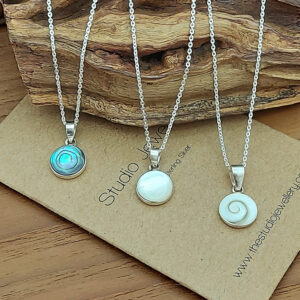 Make a statement with our Medium Abalone Shell silver necklace! Crafted from 925 sterling silver, this stunning piece features a mesmerizing abalone shell inset. Perfect for adding a touch of elegance to your everyday look.