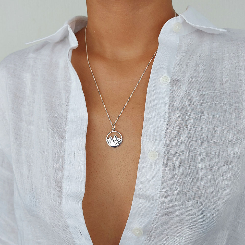 Crafted in 925 sterling silver, this mountain necklace captures the quiet strength and serenity of alpine peaks. A timeless symbol of resilience, wanderlust, and the beauty found in nature’s highest places.