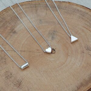 Our new Plain Triangle Silver Necklace is available to complete an on-trend stunning and simple look. We also have different designs and shapes of the same 45cm necklaces.