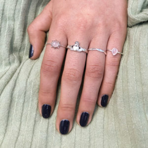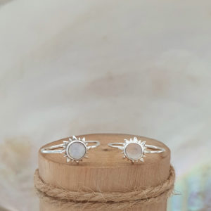 This is a sun rose quartz 925 sterling silver ring. It is one of a number of solar themed items available at Studio Jewellery, including rings and stud earrings. This ring is also available in Rainbow Moonstone.