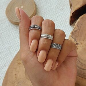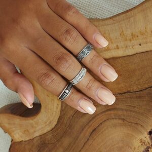 This knuckle ring has a rope pattern going down the center of the triple ring design. It has a shiny or polished finish and would look great with a similarly coloured ring combo. These items make great gifts to forever remember a moment and are flexible in size.