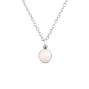 This 925 sterling silver necklace features a beautiful natural white mother of pearl shell disc pendant. There are also matching hoop charm earrings and this necklace is also available in abalone and shiva shell.