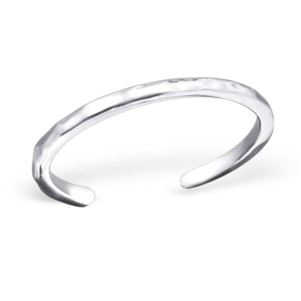 This is an ultra slim 1mm mid finger or perhaps toe ring made from solid 925 sterling silver and has a unique rock like surface pattern that breaks the otherwise smooth face. The band is open so it can be adjusted in size a little to be moved around the finger in multiple positions.
