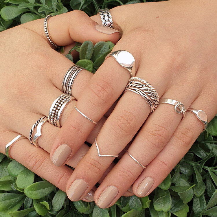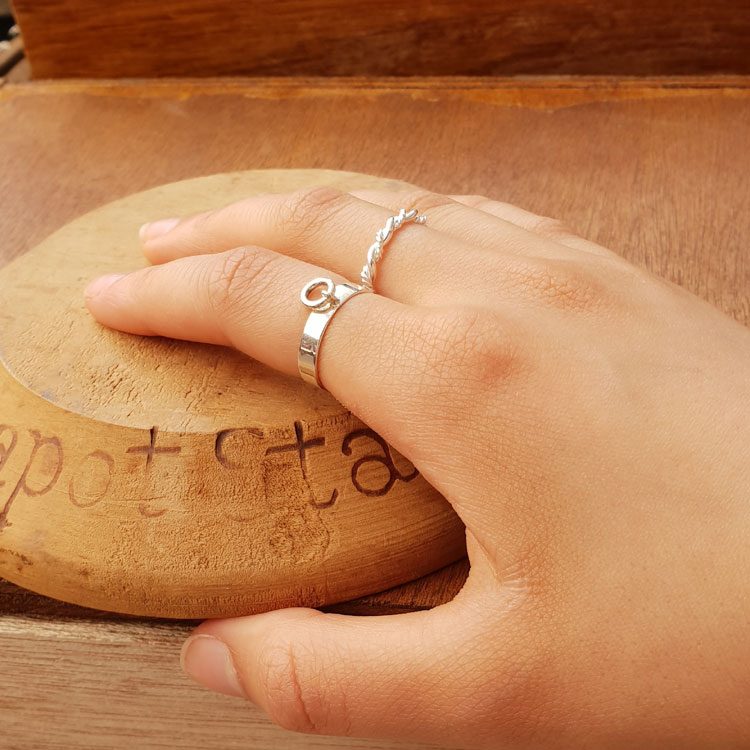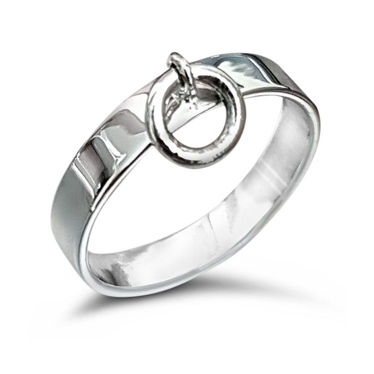 This item is a fine sterling silver band with a distinctive ringlet attached to the top which moves freely with any motion. This is a great item to be worn alone or as a stacker in a combination – simple yet very unique.