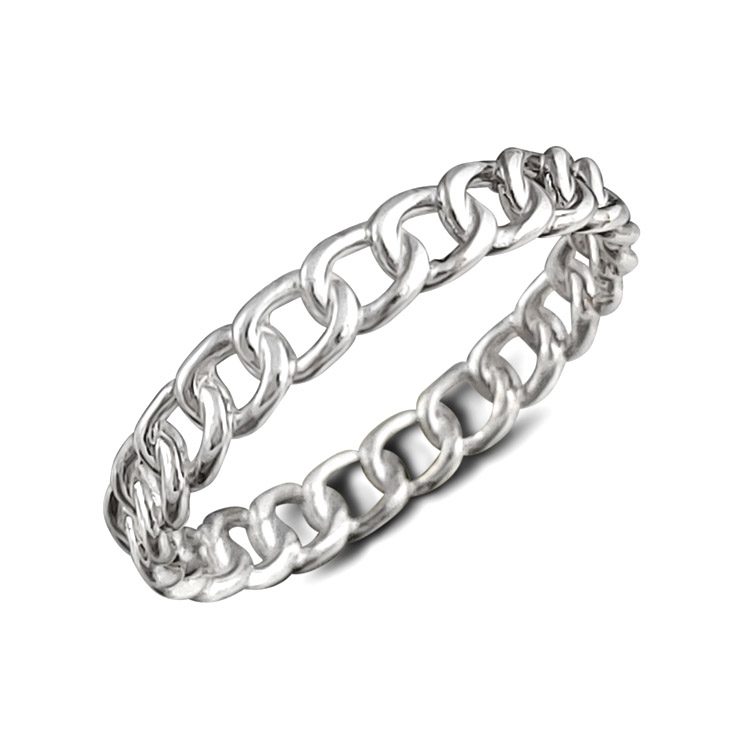 This relatively slim 3mm chain ring is made of solid 925 sterling silver and there is also a mid finger ring in a very similar form currently available. This is one of several chain themed 925 sterling silver rings that we currently carry.