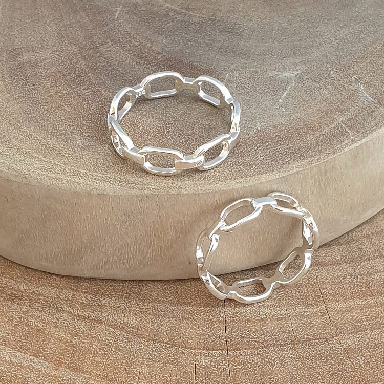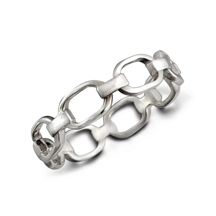 This is one of several chain themed 925 sterling silver rings that we currently carry. This item has slightly squarish chain patterns with a width of 4mm.