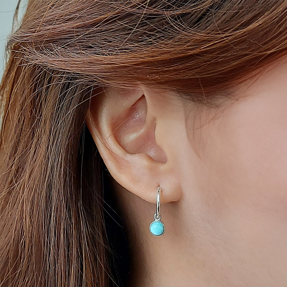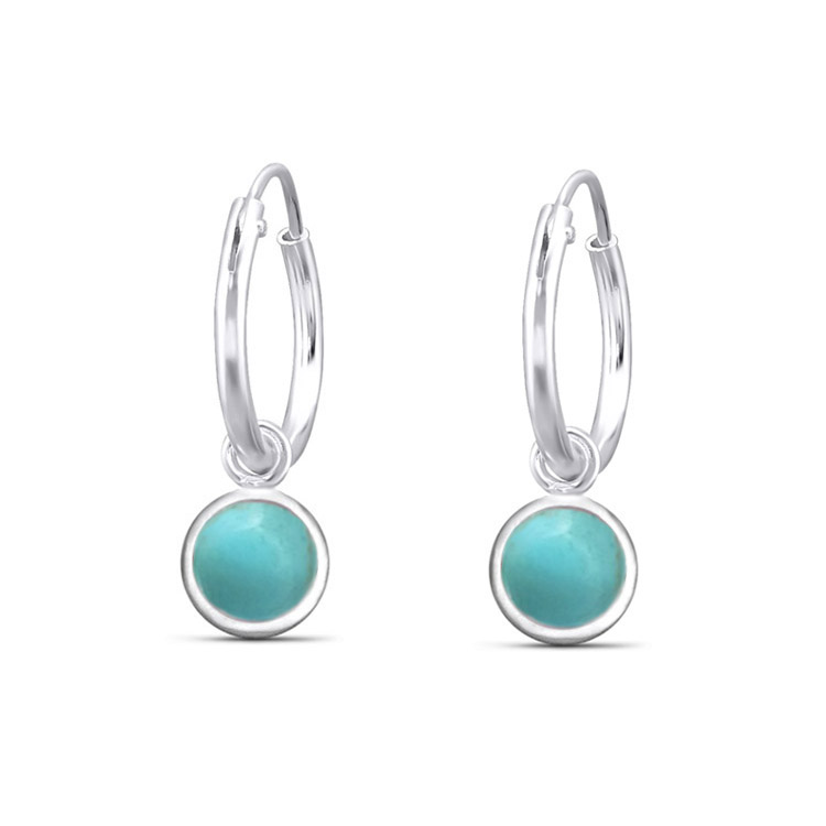 Add a touch of ocean-inspired jewellery to your look with these stunning 5mm Circle Larimar Silver Hoop Charm Earrings.