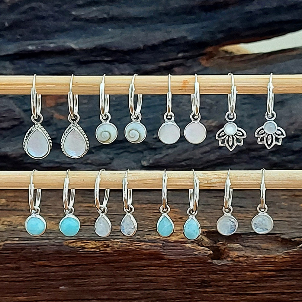 Crafted from solid 925 sterling silver, these hoops feature delicate larimar shells as charms that will surely make you stand out from the crowd. Perfect for jewellery lovers, adolescents, and young adults who appreciate the beauty of sterling silver.