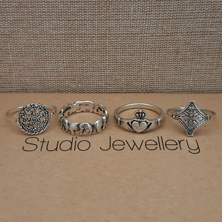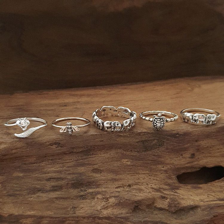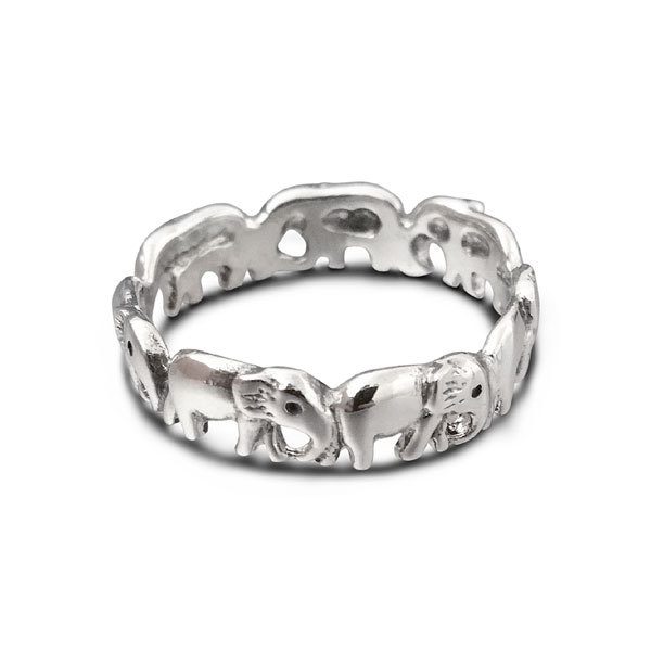 This is an Elephant band sterling silver ring comprising 7 of these ever popular animals trunk to tail around the circumference. Comprised of solid 925 sterling silver with slightly oxidised edges to give it that aged looked in keeping with the free spirit and bohemian theme.