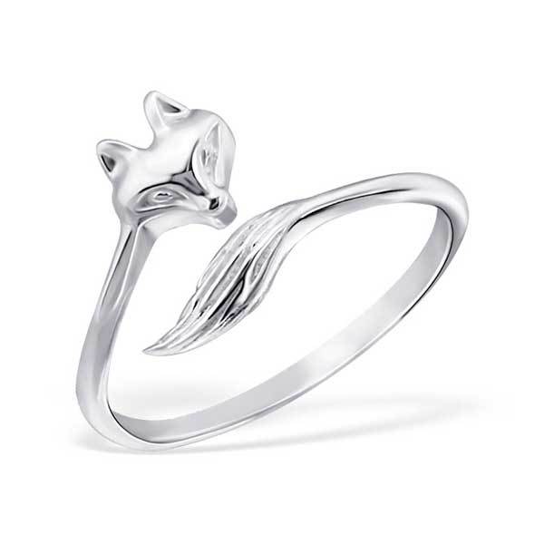 The fox sterling silver ring is adjustable in that the band is not closed and therefore can be moved up or down a size so it would make a great gift item. The pattern is very popular and the head and tail are visible on the face with the body forming the band.