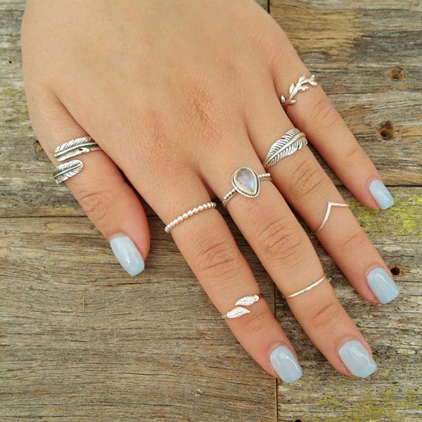 This is a small adjustable leaf midi ring in sterling silver, designed to sit on the mid part of the finger or perhaps even the toe. Each end has the distinctive flora pattern which can be brought together and overlapped for fitment.
