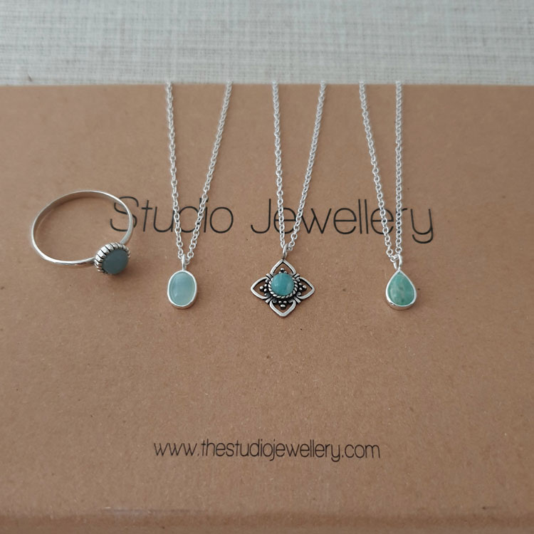 This is silver gemstone ring with a beautiful circle patterned head decorated by an Amazonite stone that soothes the spirit and soul with its calming turquoise blue colours.