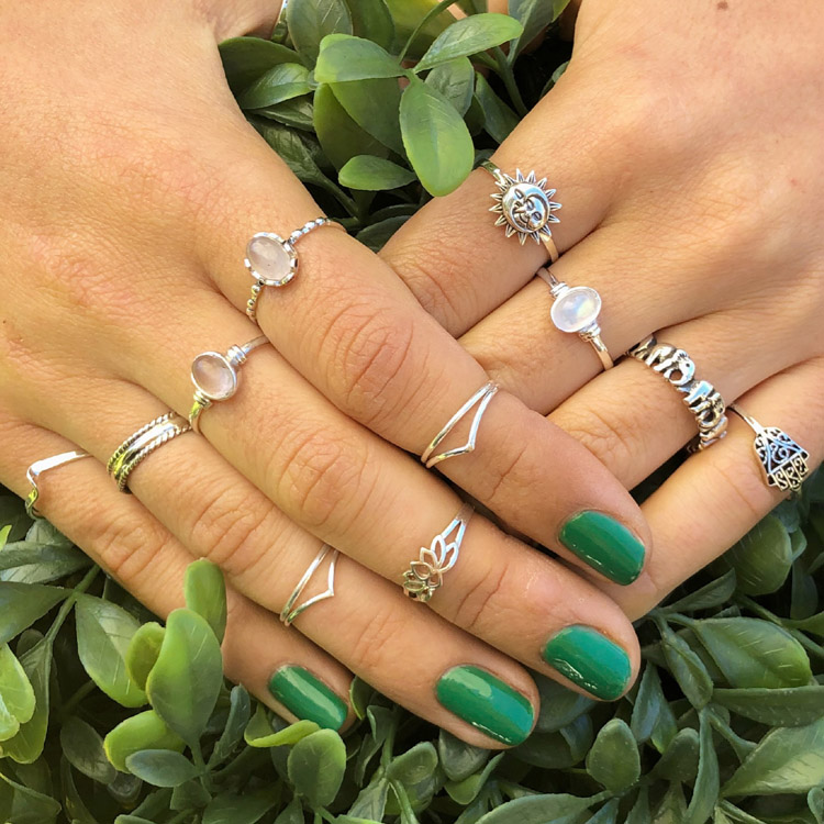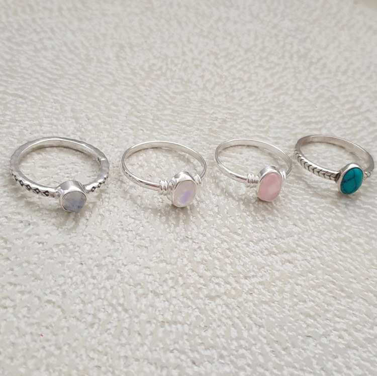 This is a classic shaped 925 sterling silver ring with a rose quartz gemstone as the feature stone. This is one of several similar rainbow moonstone rings available at Studio Jewellery.