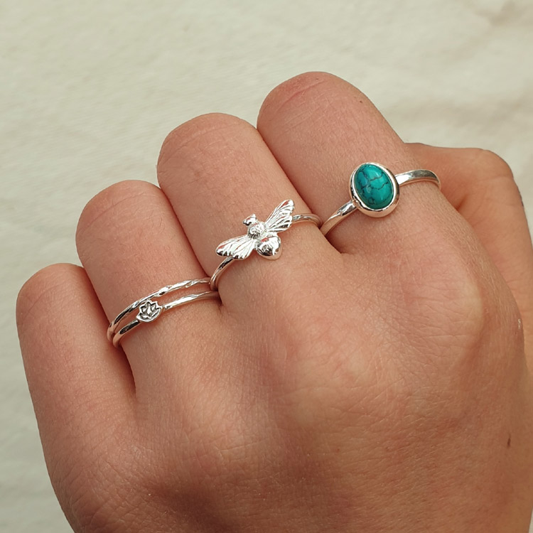 This is a classically oval shaped 925 sterling silver ring with the feature stone being made of reconstituted turquoise. There are nice webbing patterns through the stone and a classic turquoise colour.