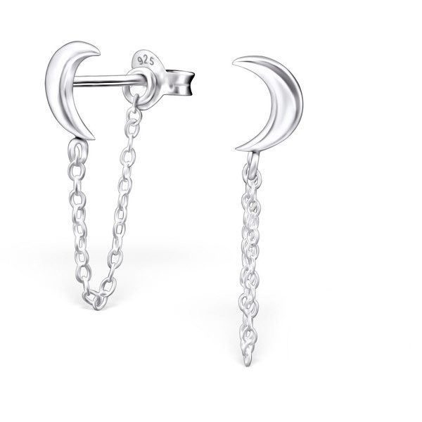 This is a crescent moon sterling silver stud jacket earring where a chain hangs down and connects to the back of the ear via a butterfly clasp. They are great for where a little bit more flash is required for an evening out.