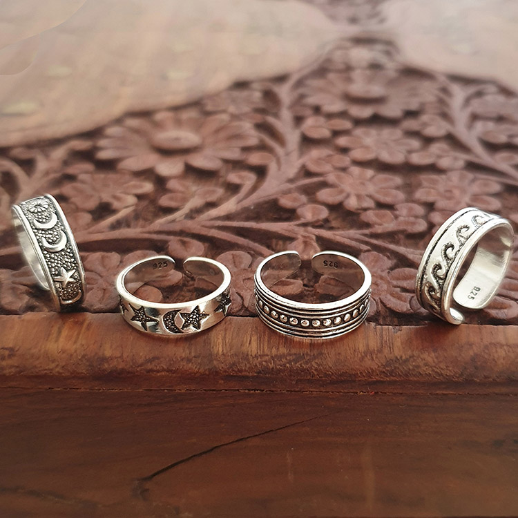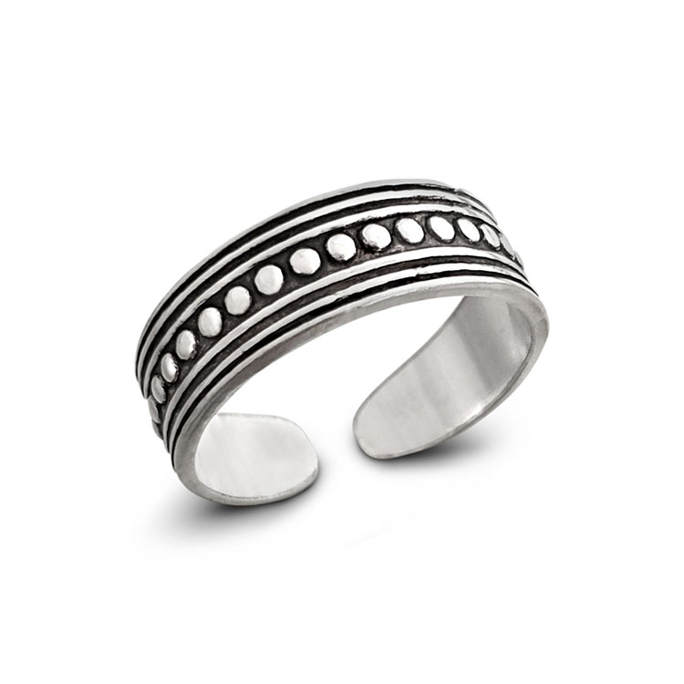 This 925 sterling silver knuckle aka mid finger ring has a distinctive dot pattern down the center of the band with lines going out to the edge. This is one of many knuckle rings here on Studio Jewellery and could also be used as a toe ring.