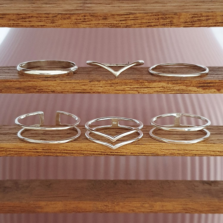 This is a Double Chevron Fine sterling silver ring that is joined at the back to give the appearance of being 2 separate stackers and has become one of our most popular items. The makeup is fine yet quite strong and with good longevity for such an item.