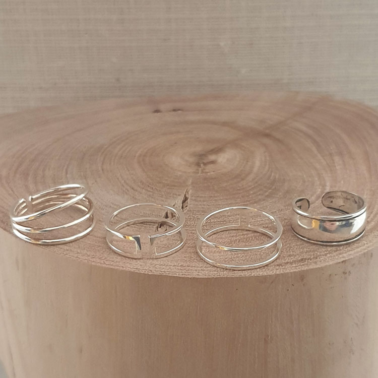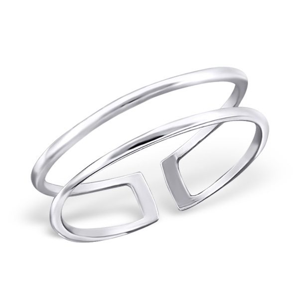 This is a double fine band or dual circle ring in beautiful sterling silver and it gives the appearance of 2 fine stacker rings worn in perfect balance. It is available in four/five sizes and because it is open it can be adjusted up or down a size without an issue and would perhaps make a great gift where you are not absolutely sure of the exact measurements of the person.