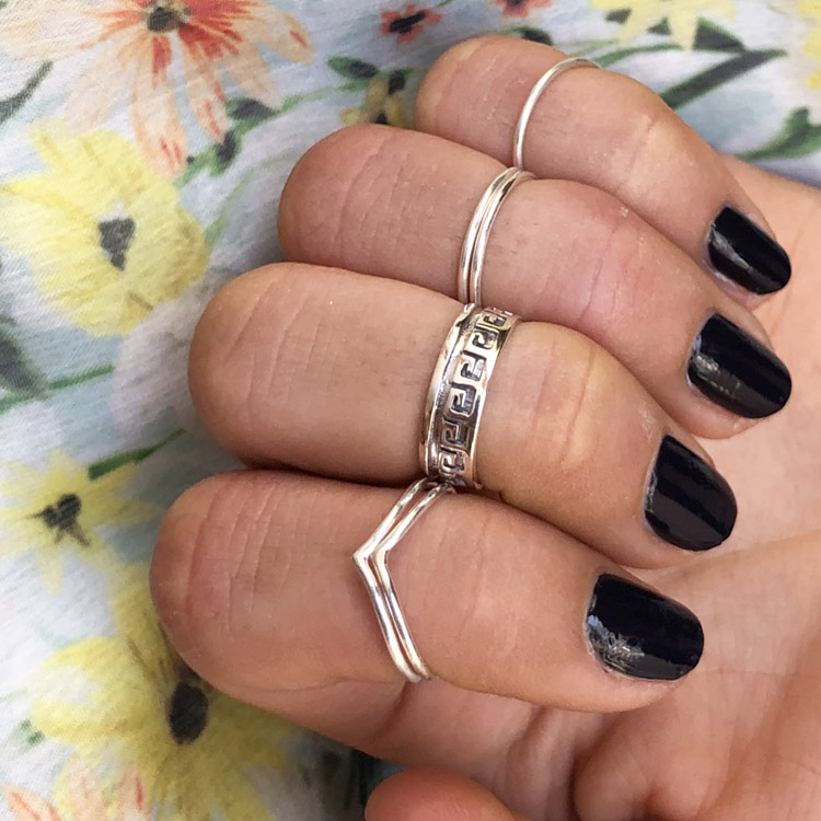 This is a classic greek key sterling silver mid finger AKA knuckle or perhaps toe ring, an age old European symbol which we have in several designs.