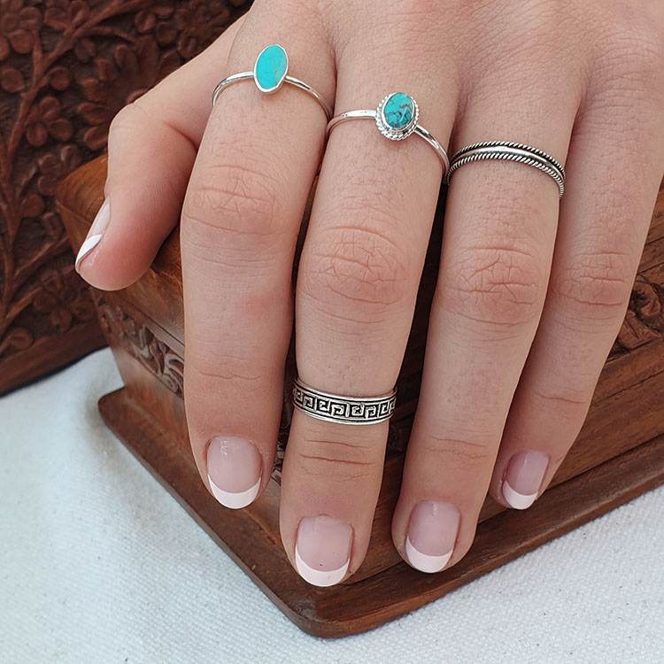 This is a classic sterling silver mid finger or perhaps toe ring with the Greek Key pattern, an age old European symbol.