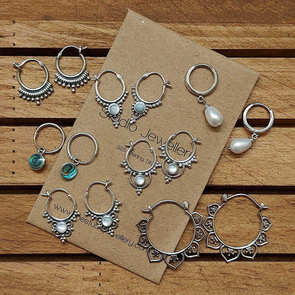 Additionally, we have similar designs in necklaces, studs, rings, and other hoop earrings.