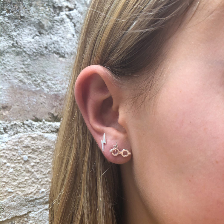 These are very cute glasses with a lightning bolt sterling silver stud earrings with a polished finish.