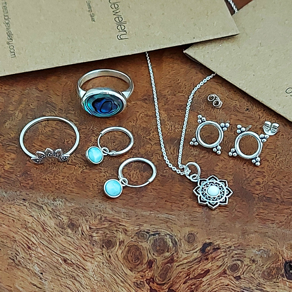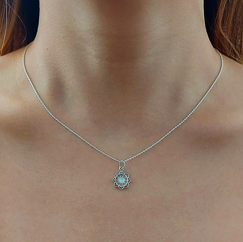 Introducing the Mandala Flower Shell Silver Necklace: a stunning piece that effortlessly combines elegance and youthful charm. Crafted in sterling silver, this necklace showcases a mesmerizing mandala pattern design pendant, creating an enchanting focal point. Matching studs, hoops, and rings available.