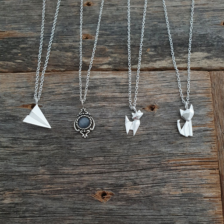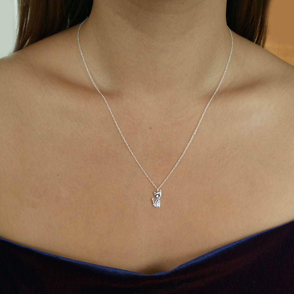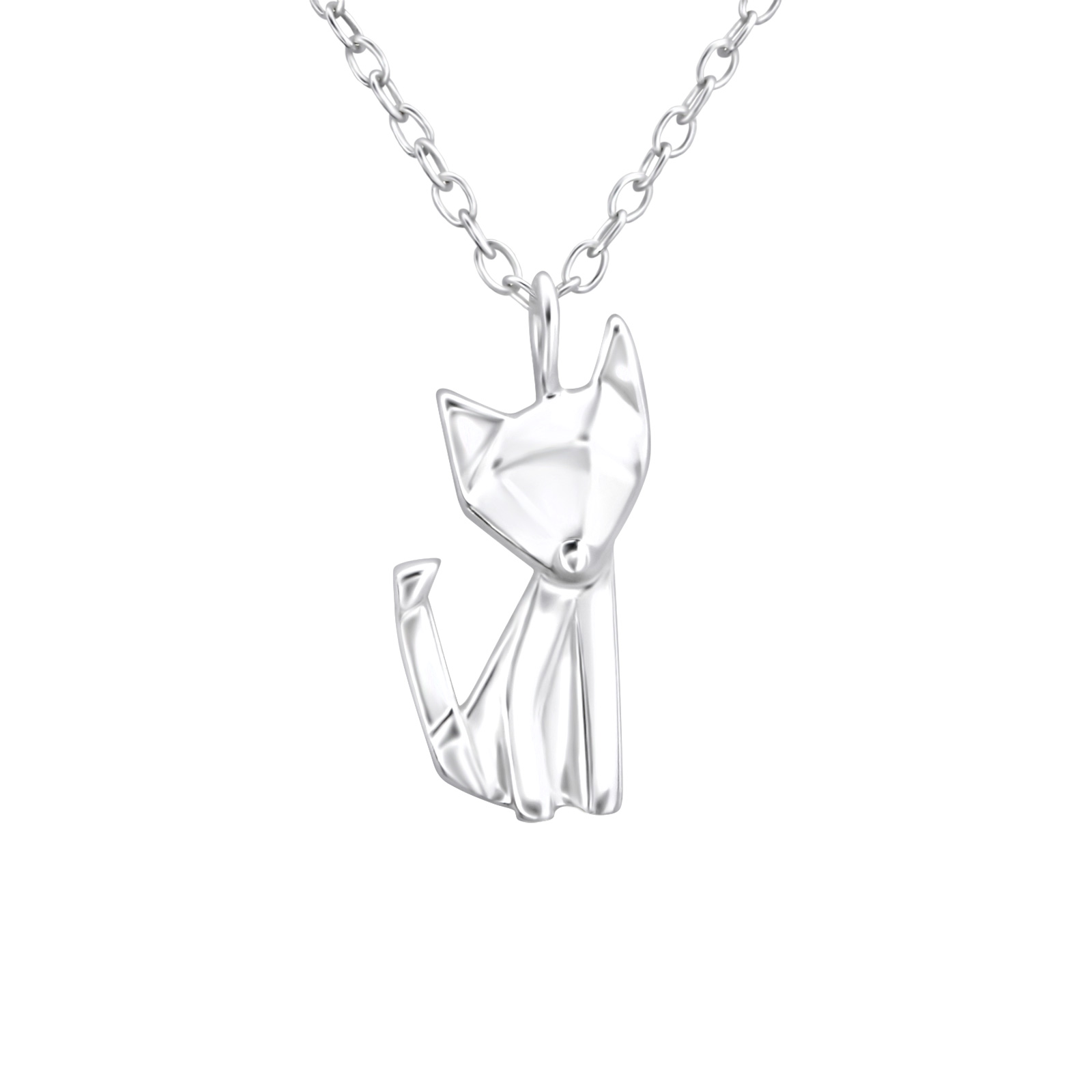 This 925 sterling silver necklace has a origami pattern fox as the feature pendant.
