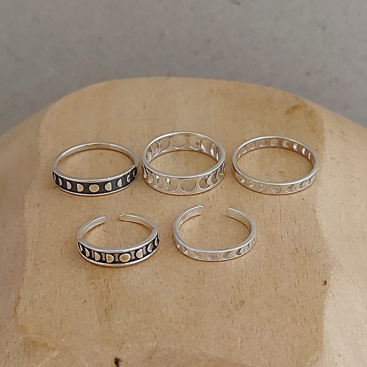 This is a phases of the moon mid finger or perhaps toe ring made from solid 925 sterling silver with an oxidised or darkened finish. There is also a full sized ring in this same style available in a slightly thicker form.