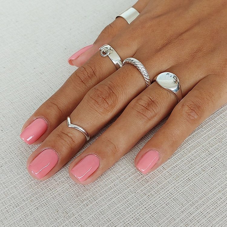 This is a pretzel shaped 925 sterling silver ring with a high polished finish.