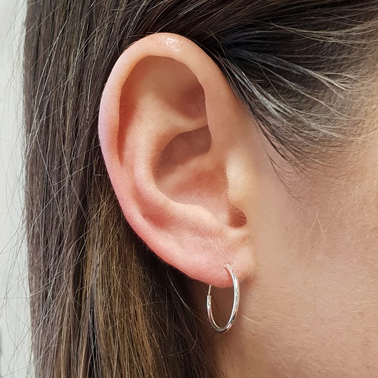 These tiny hoops in sterling silver will just hug the outside of the ear lobe depending of course where the piercing is, they come in 5 sizes 8mm-16mm and are great as sleepers or for playing sports, ideal as stud replacements or to be worn further up the ear cartilage. Price is for 1 Pair of Earrings. Size is taken from widest point to point.