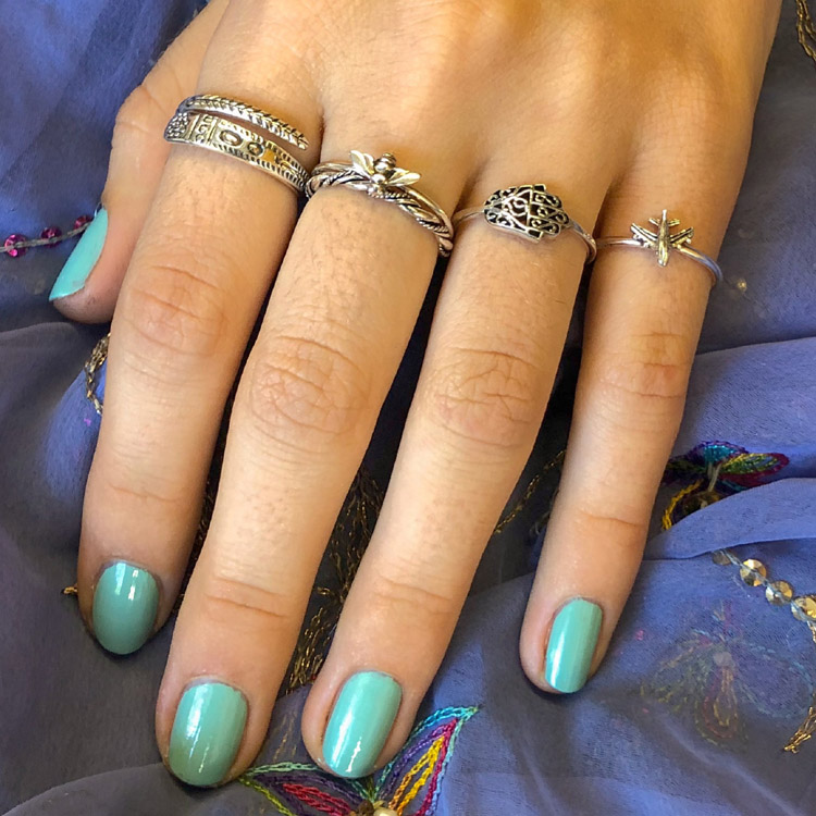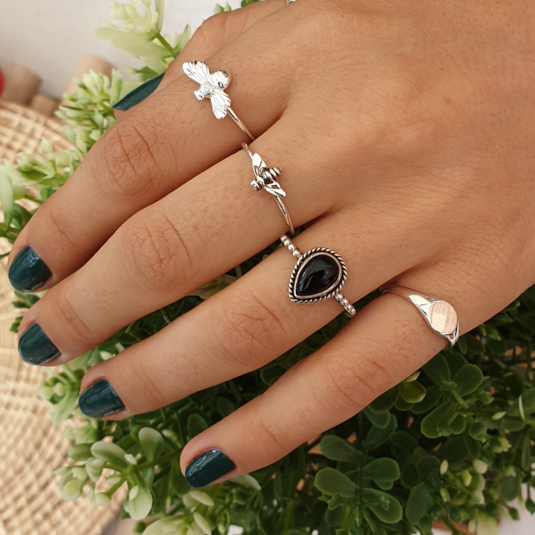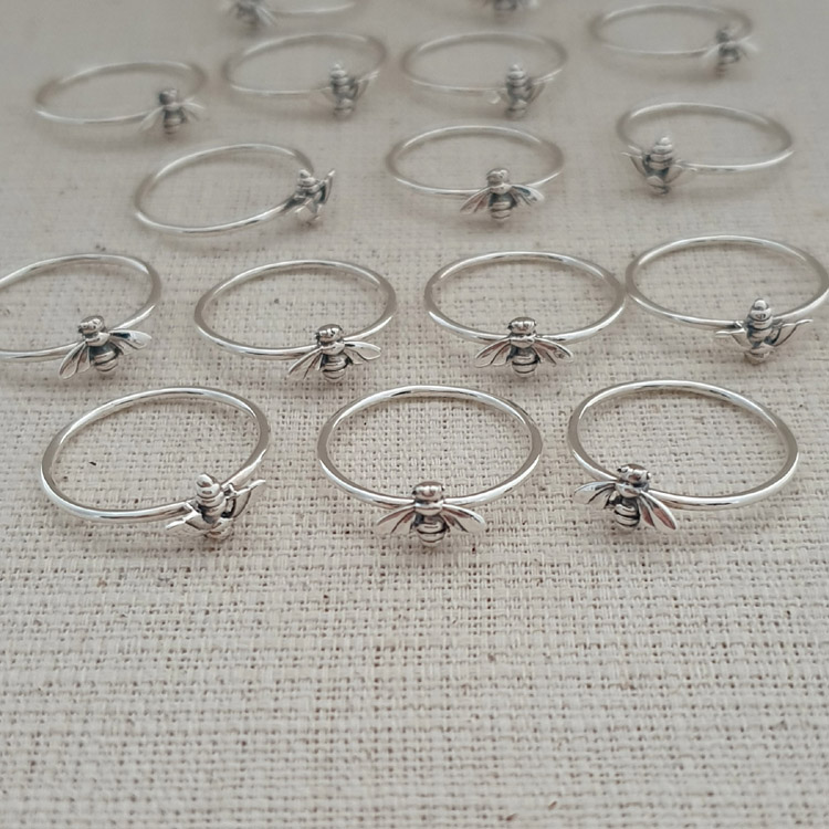 This small bee 925 sterling ring has been derived from the very popular studs of the same design – both are darkened from oxidisation.