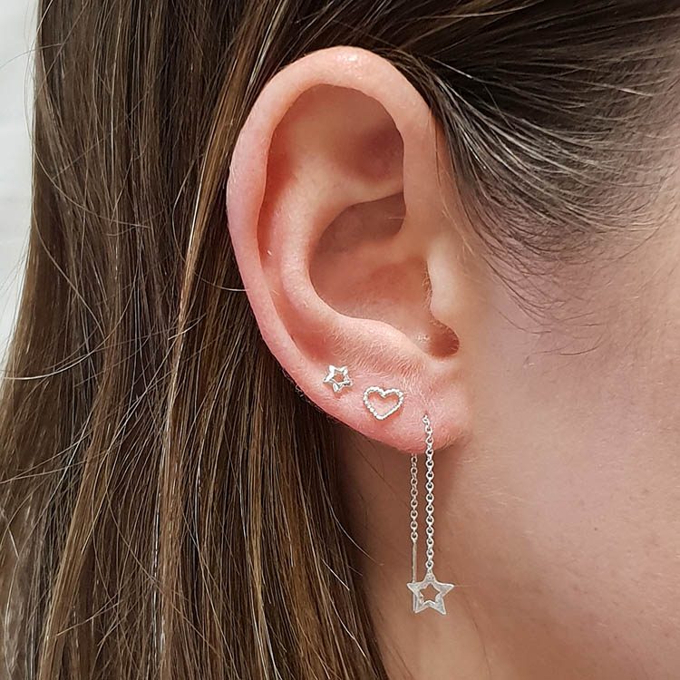 These 5mm heart shaped earring studs set in solid sterling silver are featured by a cut out inner design and accentuated with beaded nodes to give off just a little bit more light.