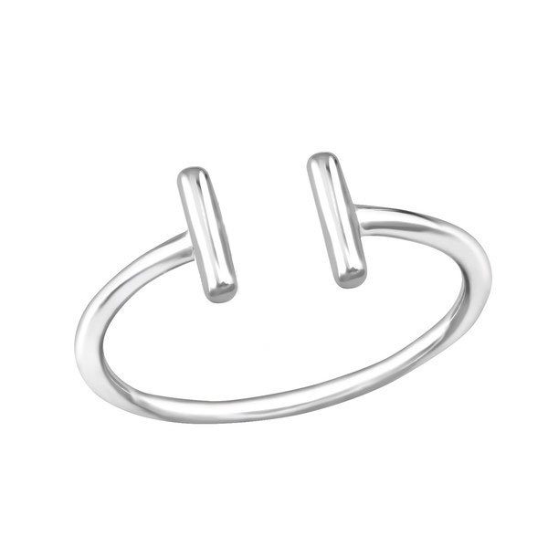 This 925 sterling silver ring features a small fine double t pattern on an open band which makes it adjustable in size to a degree. The theme is fine geometric lines which has been probably the most popular design series of recent times. There is also another similar ring with much longer T patterns available.