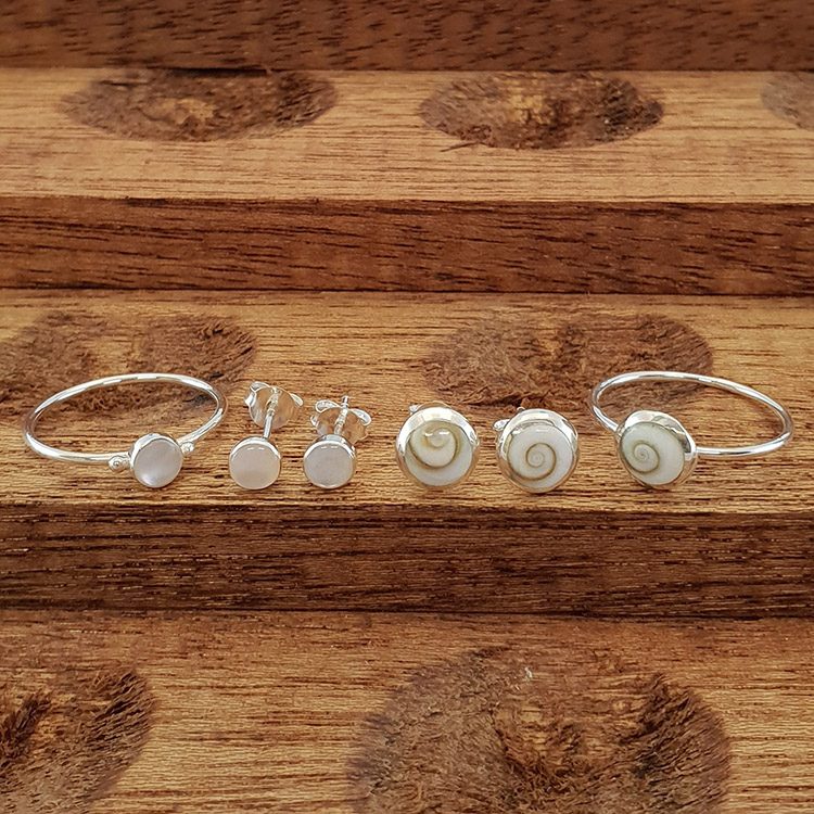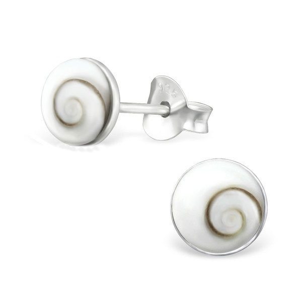 These sterling silver earrings are a round 6mm in size and have a natural Shiva or swirl shell as the feature item. As they are naturally occurring each one is slightly different and they are perfect with those with a connection to the water.