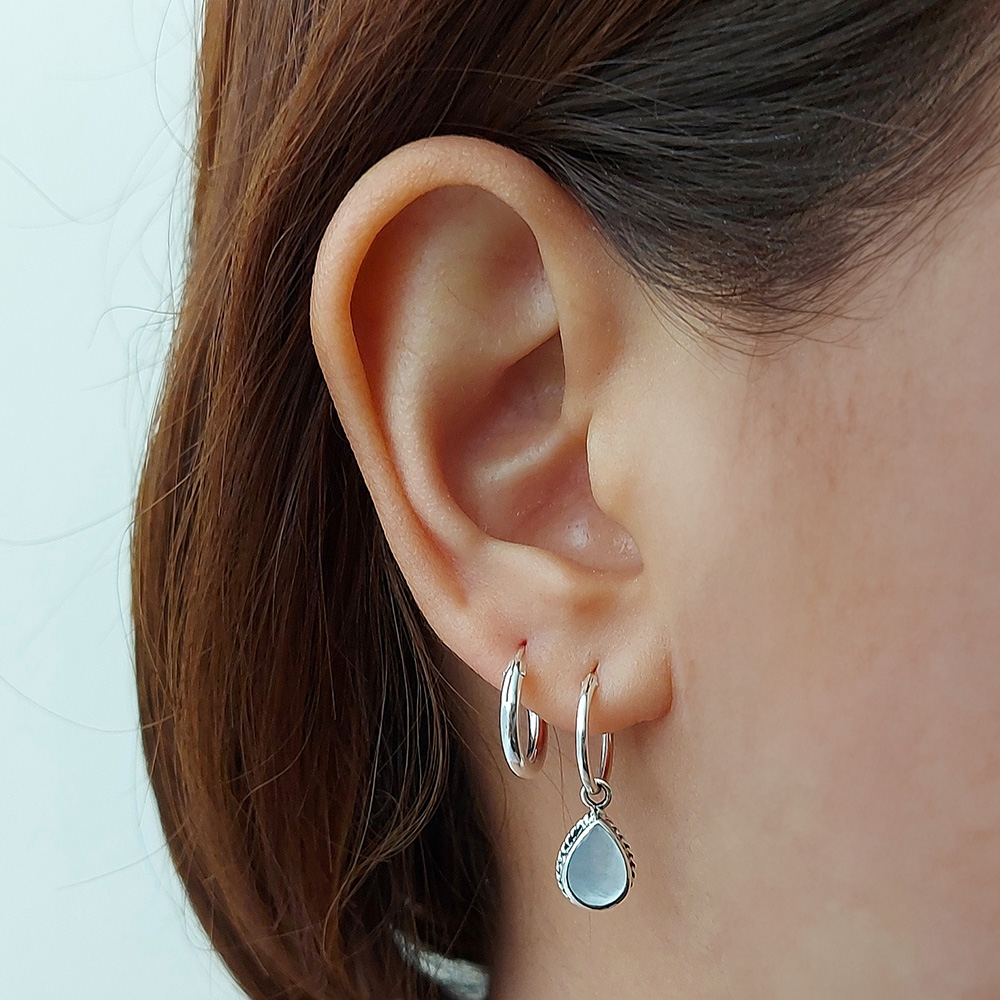 Tear Drop White Shell Silver hoop charm earrings – a stunning accessory that will elevate your style to new heights. Crafted with utmost precision from solid 925 sterling silver, these earrings are the epitome of elegance and sophistication.