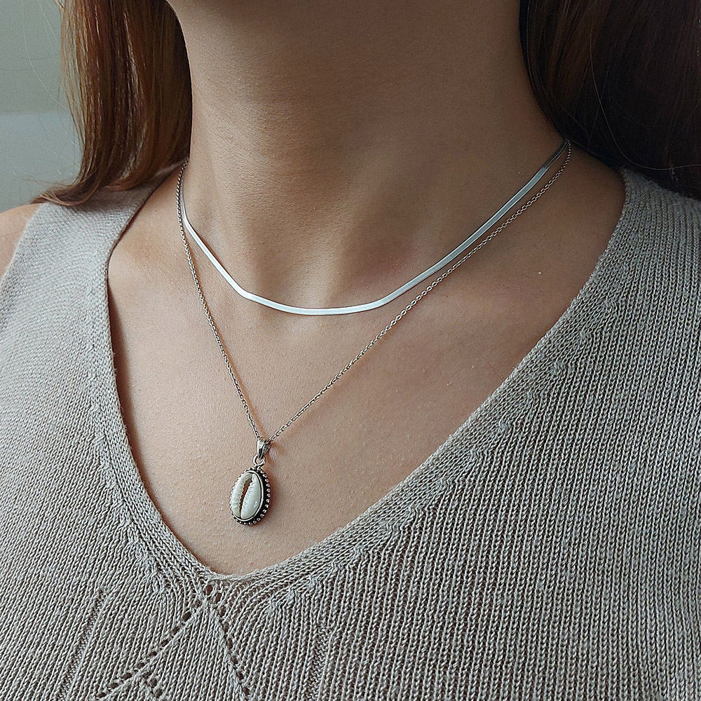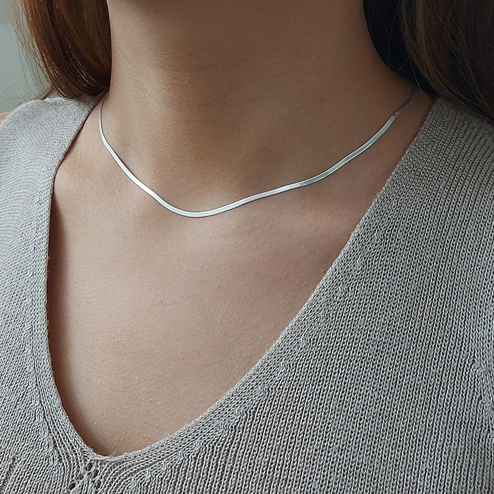 Elevate your style with our stunning Thin Herringbone Silver Necklace. Crafted from the finest sterling silver, this necklace effortlessly combines trendiness and timelessness. Whether you choose to wear it alone or mix and match with other necklaces, its versatility knows no bounds.