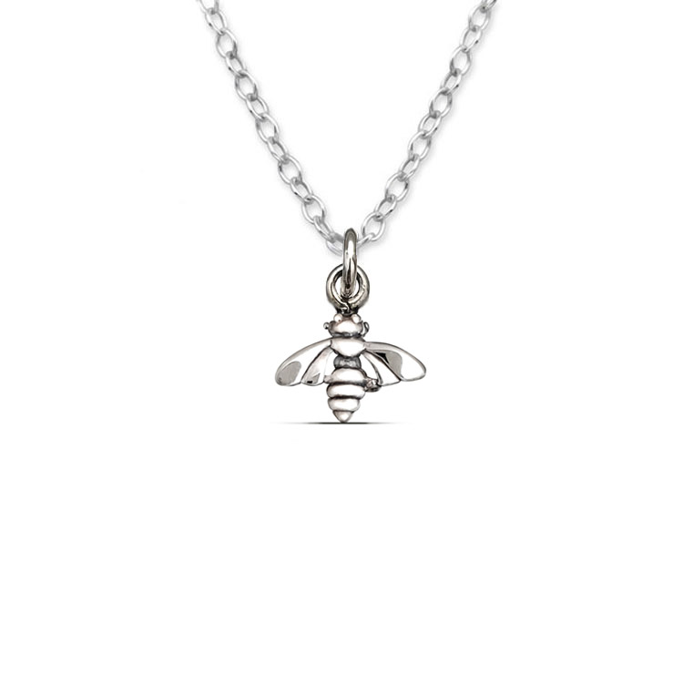 This is a solid 925 sterling silver necklace with very cute yet tiny bee pendant. It is also available in a matching ring, stud and hoop charm earring.