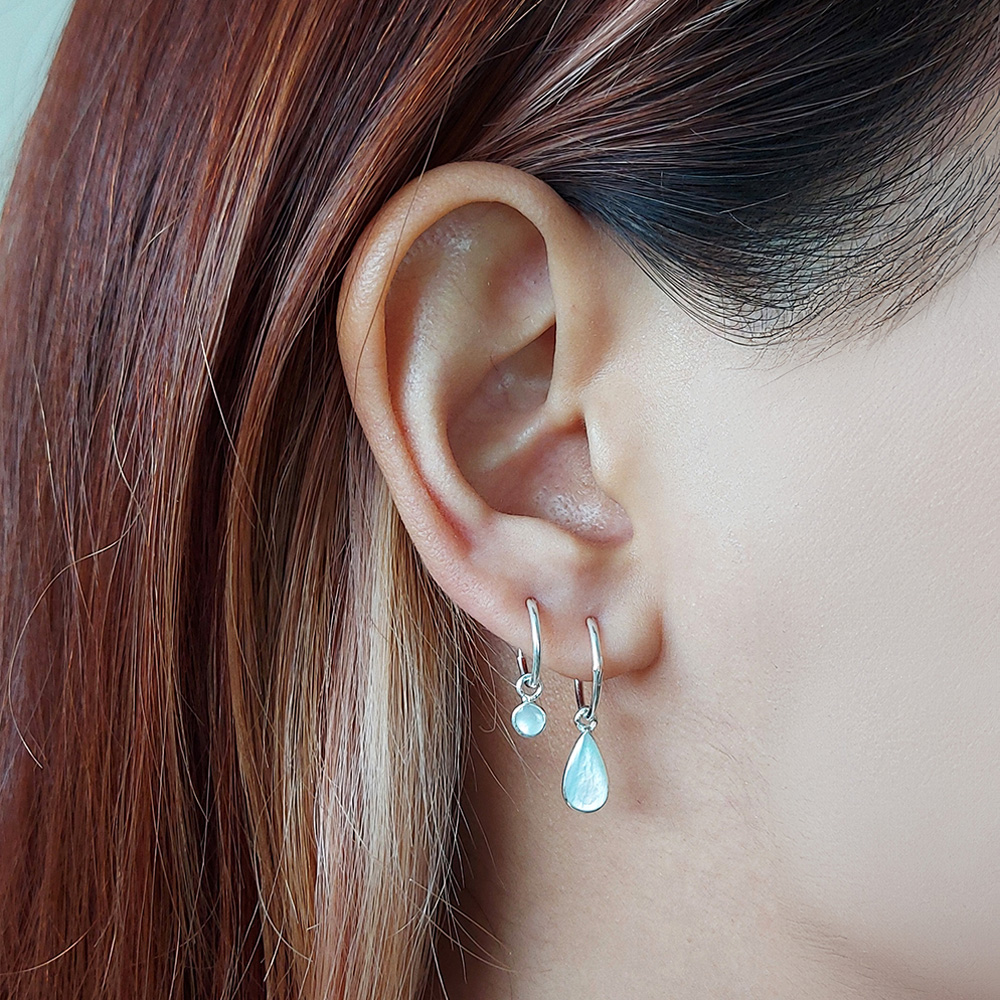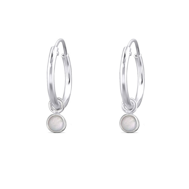 Add a touch of coastal charm to your look with these dainty White Shell hoop charm earrings. Crafted from sterling silver, these 10mm hoops feature delicate white shell discs charm for a subtle yet stylish finish. Perfect for any occasion, these sterling silver hoops will effortlessly elevate your accessory collection.