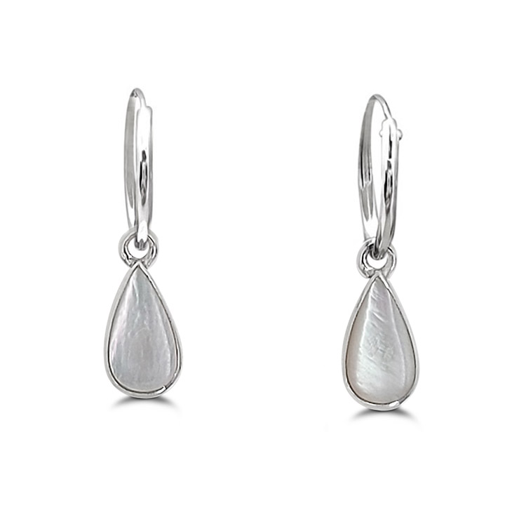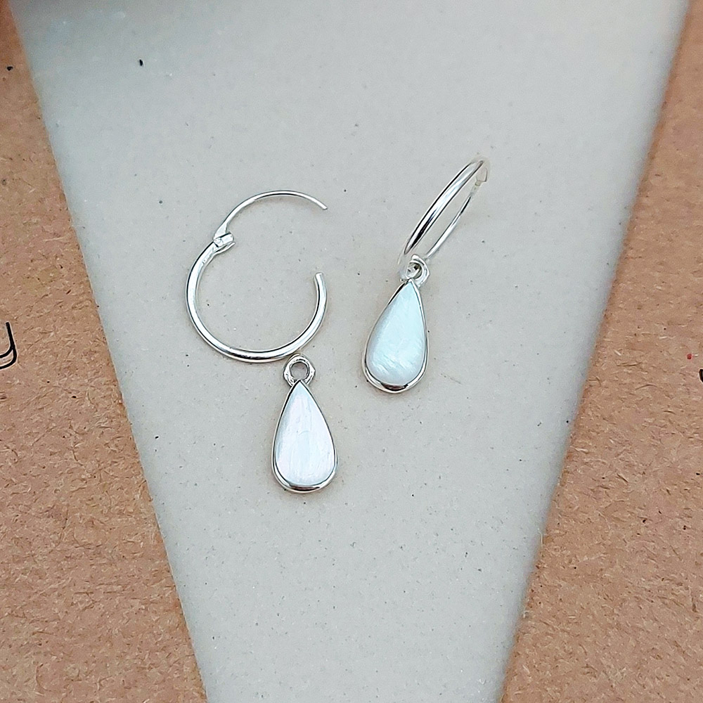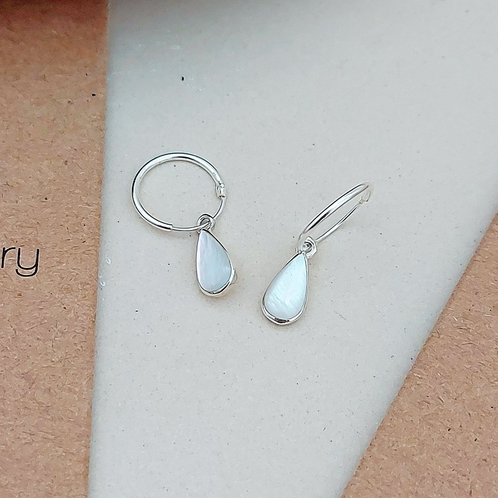 Introducing our Water Drop White Shell Hoop Charm Earrings, the perfect accessory for the modern woman who adores timeless elegance. This sterling silver hoops feature a stunning white shell charm in the shape of a delicate water drop.