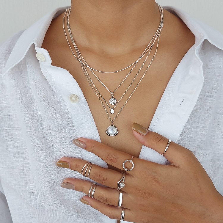 The pendant features a beautiful shimmering white shell surrounded with small decorative beading. It comes on a standard 45 cm fine chain.