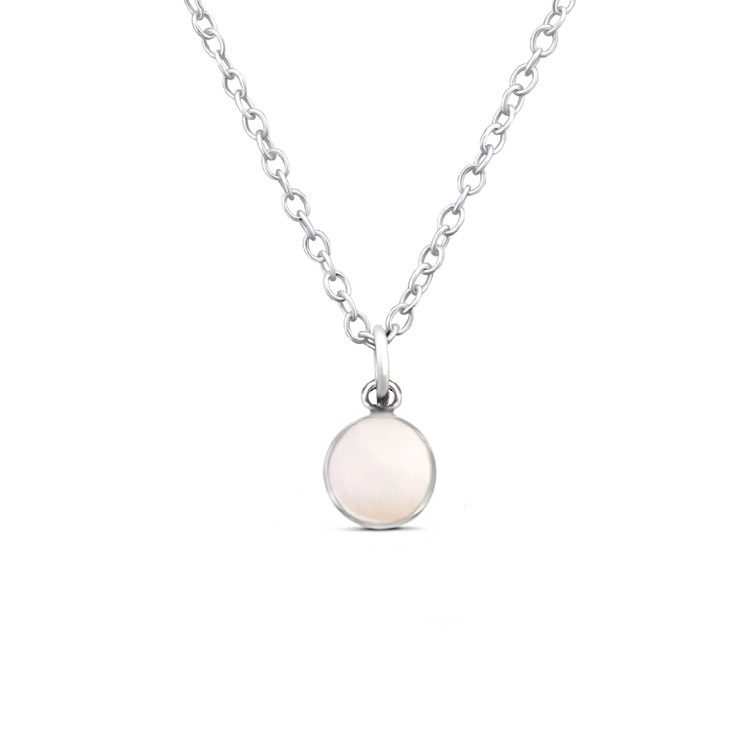 This 925 sterling silver necklace features a beautiful natural white mother of pearl shell disc pendant. There are also matching hoop charm earrings and this necklace is also available in abalone and shiva shell.