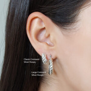 Be the first to review “Classic Croissant Silver Hoop Earrings”