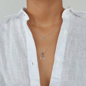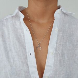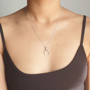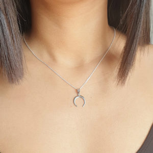 This crescent shaped moon pendent and necklace is like all of our items on Studio Jewellery, made of solid 925 sterling silver. It includes a standrad 45 cm chain and pendent which can be detached if require. This design is also available in a slightly smaller necklace, stud earrings and rings.