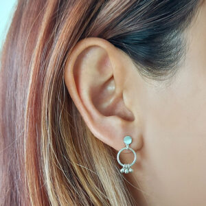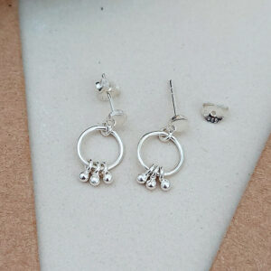 Introducing our Dangly Dots silver earring studs – crafted from 925 sterling silver. These elegant earrings feature a disc stud adorned with a circle dangly hoop and three other dangling dots, adding a touch of sophistication to any look. Versatile and lightweight, these earrings are perfect for everyday wear, effortlessly transitioning from day to night with style and grace.